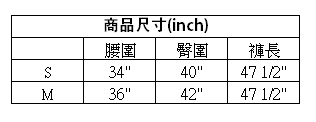 * 尺寸表為商品平放測量,以英吋(inch)為單位。