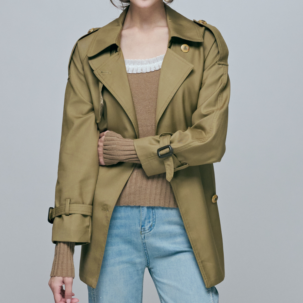 Classic Double-Breasted 經典雙排釦:承襲正統風衣的 雙排釦設計,搭配大氣的 翻領 與 肩章(Epaulets),展現率性俐落的英倫風格。