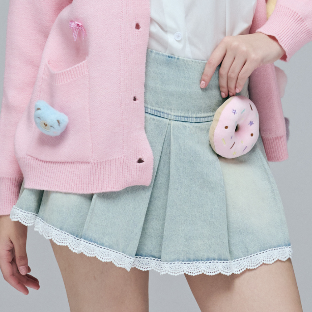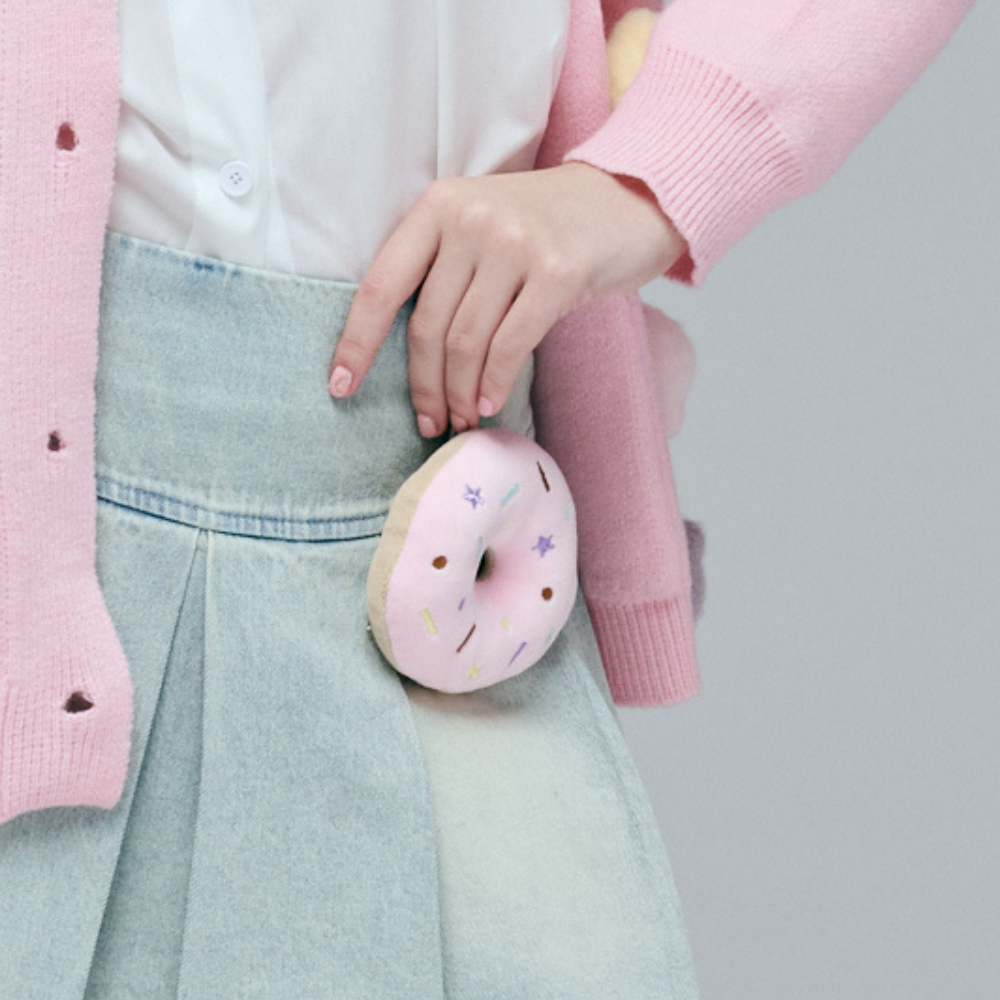俏皮甜甜圈吊飾療癒甜甜圈:隨裙附贈超可愛的立體絨毛甜甜圈裝飾,活動式設計可隨意別在腰間或包包上,軟綿綿的觸感讓心情瞬間變好!