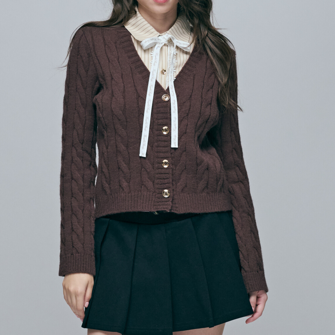 Classic Cable Knit 立體麻花:衣身採用經典的拐麻花立體織紋,不僅增添視覺豐厚感,更能修飾上半身線條,散發濃濃的書卷氣息。