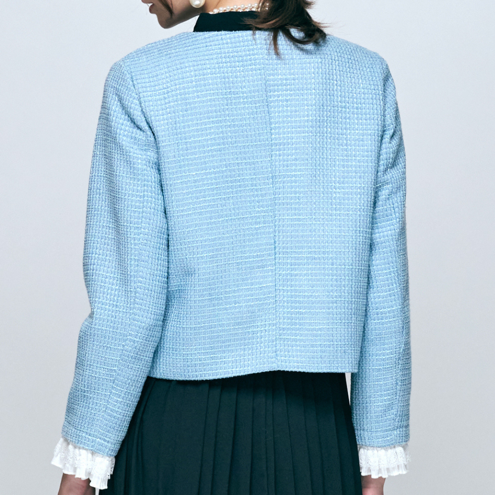 Court Style Lace Cuffs 宮廷風袖口:袖口處拼接了細緻的 多層次蕾絲荷葉邊,舉手投足間展現如公主般的優雅氣息,為俐落的外套增添了柔美的宮廷元素。