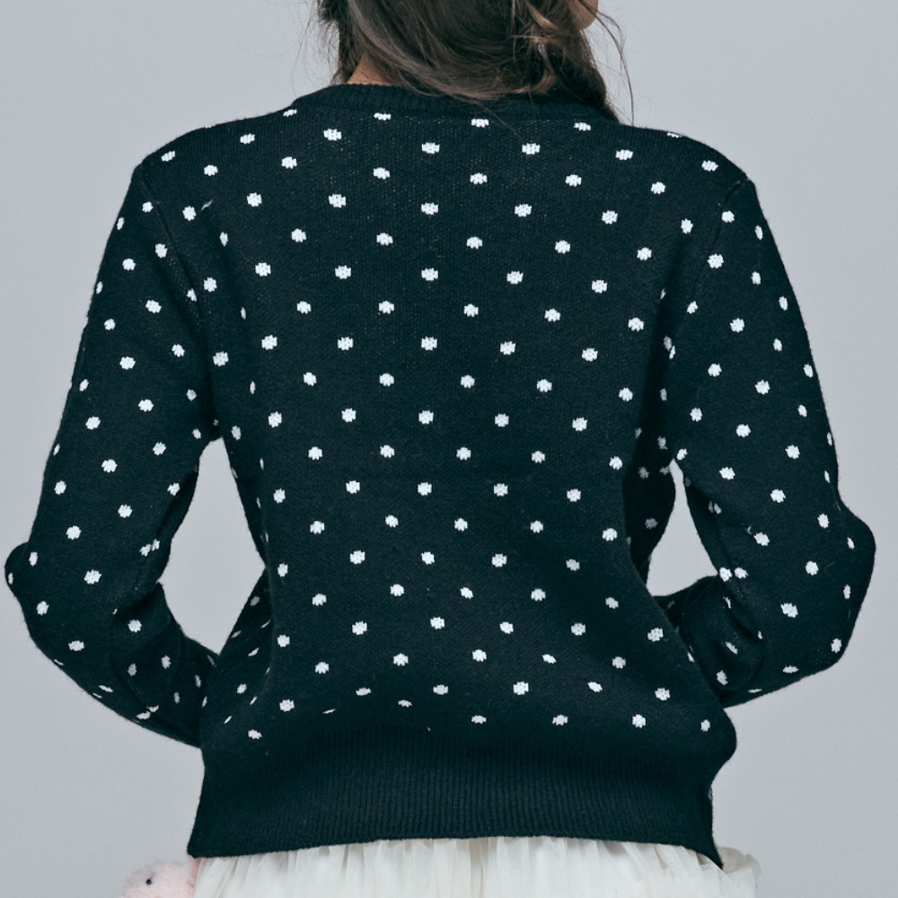 柔軟提花針織柔軟糯花:嚴選58%壓克力纖維混紡31%符合工藝,運用高品質的提花針織造出經典的波點圖騰。符合成分讓觸感更加滑順軟糯,彈性極佳,穿著體驗舒適滿分。