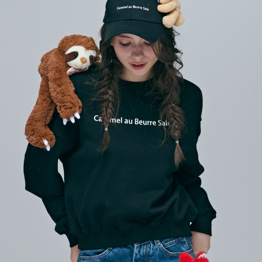 紋理泡泡印花厚膠印花:胸前印有簡約的法文標語(Caramel au Beurre Salé / 焦糖海鹽奶油),採用厚膠印花,呈現出輕微的立體外觀,耐洗不易裂。