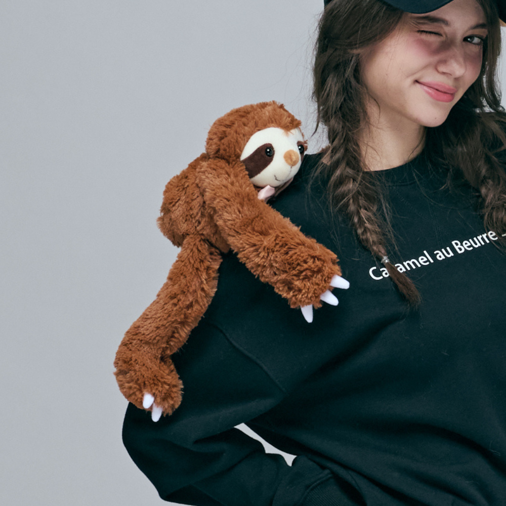 100%純棉親膚舒適 / 經典休閒顯瘦版型 / 療癒系活動式立體樹懶 / 胸前質感厚膠字母印花