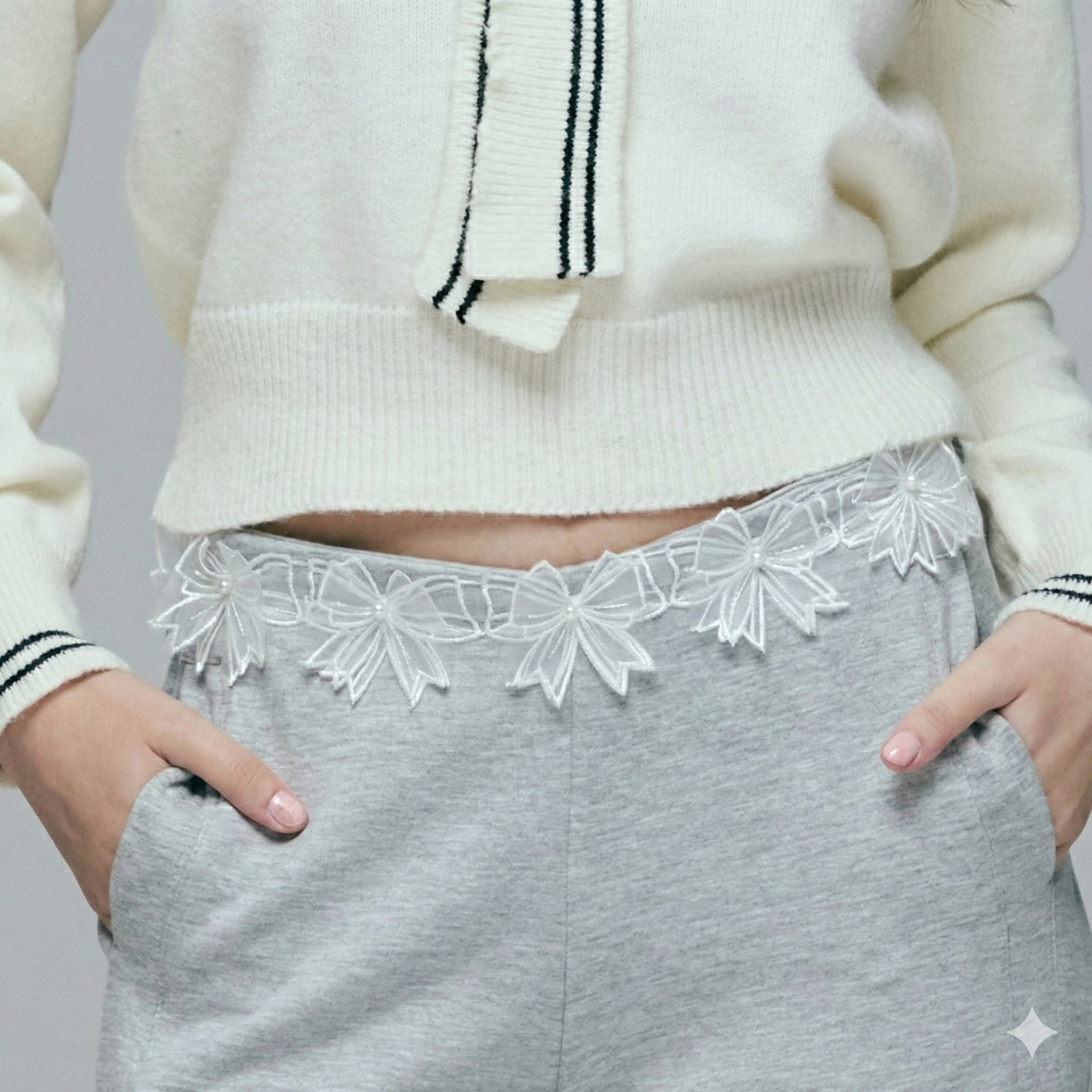 Sweet Bow Detail 甜美亮點:腰頭裝飾著一整排立體蝴蝶結織帶,為極簡的褲型注入精緻的少女心,將上衣紮進去穿立刻成為視覺焦點。