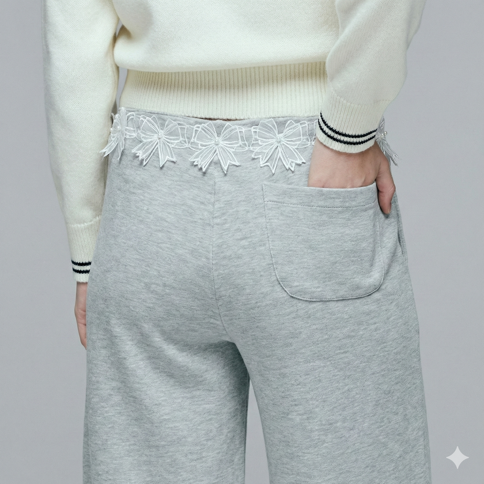 柔軟親膚太空棉 / 吸濕排汗 / 腰頭精緻立體蝴蝶結 / 顯瘦中線剪接直筒版型